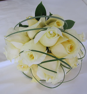 The bride for this wedding last month wanted a "shabby chic feel"- posies tied with lace.